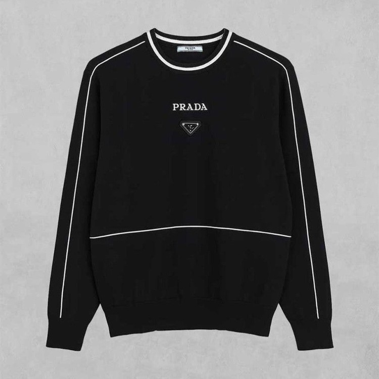 프라다 트라이앵글 로고 라인 울 블렌드 니트 풀오버