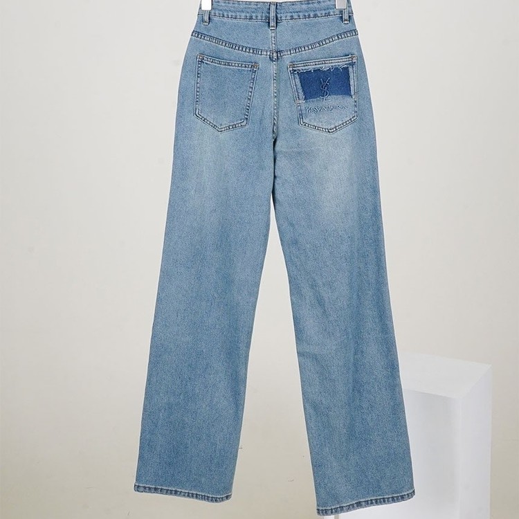 [단순반품ok] 생로랑 빈티지 데미지 포켓 로고 와이드 데님 팬츠