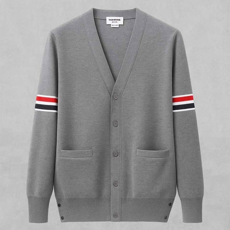 톰브라운 RWB 암밴드 파인 메리노 울 브이넥 가디건 2color