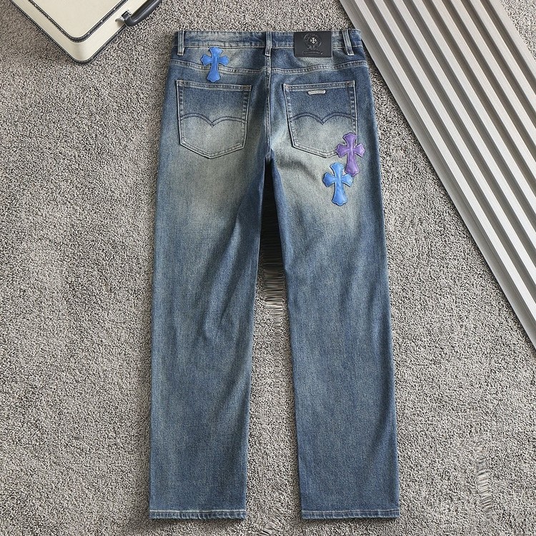 크롬하츠 레더 패치로고 스판 데님진