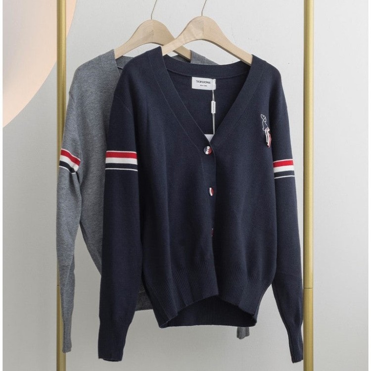 톰브라운 밀라노 스티치 암밴드 V넥 양모 가디건
