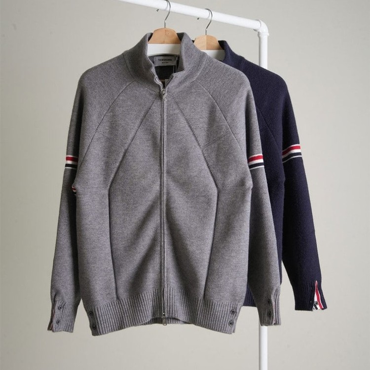 톰브라운 코튼 삼선라인 케이블 니트 풀집업 자켓 2color
