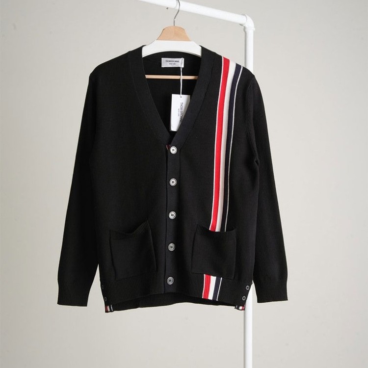 톰브라운 코튼 삼선라인 니트 가디건