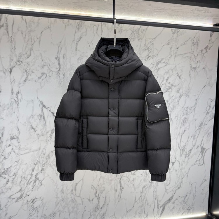 프라다 포켓로고 구스다운 후드 패딩