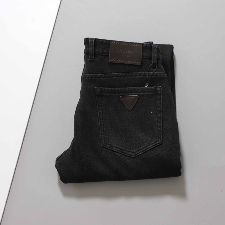 프라다 클래식 삼각 로고 융기모 블랙진