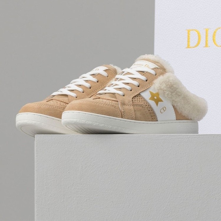 디올 Star Sneakers Beige Suede Calfskin Beige