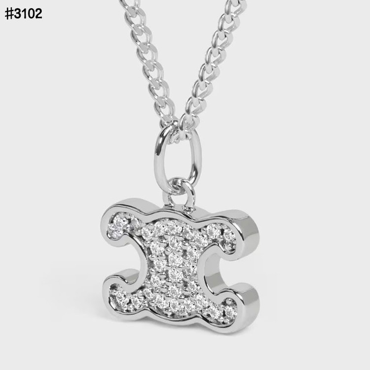셀린느 트리옹프 라인 스톤 네크리스 로듐 피니시 브라스&크리스탈