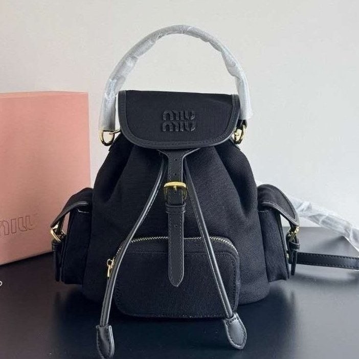 미우미우 레터링로고 캔버스 스몰 백팩