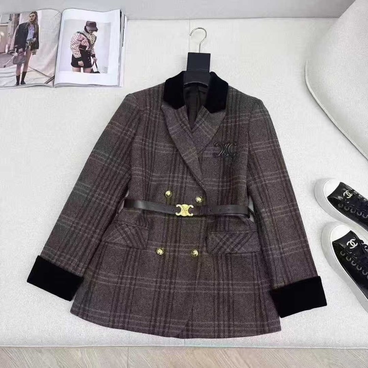 [단순반품ok] 셀린느 체크카라 울자켓
