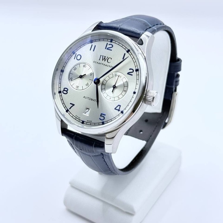 IWC 포르투기저 오토매틱 42 실버톤 다이얼 블루 가죽 스트랩 시계