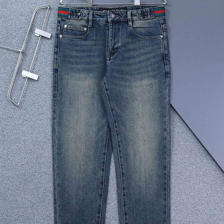 구찌 스틸로고 삼선밴딩 워싱 데님 팬츠