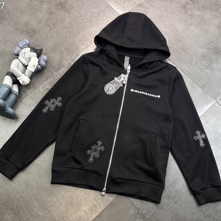 크롬하츠 레터링 레더 크로스 집업 후드 자켓