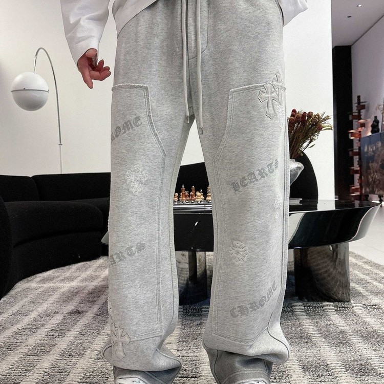 크롬하츠 레더 패치 코튼 와이드 스웻 팬츠