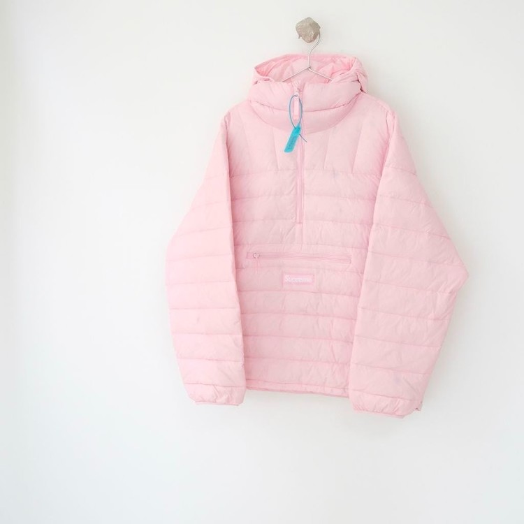 •Supre** FW WEEK6 마이크로 다운 하프 지퍼 후드 풀오버(짜임 로고 라벨 장착) 반지퍼 형태의 립(퀼팅) 다운 재킷, 남녀 공용입니다. 충전재는 90% 화이트 덕다운을 사용했고, 모든 디테일은 원본과 1:1로 재현되었습니다. 원단·지퍼·색상 등 부자재는 맞춤 제작되어 매장 진열용 오리지널과 구분 없이 착용하실 수 있는 수준입니다. 색상은 블랙·핑크·그레이이며 전체적으로 넉넉한 루즈핏입니다.