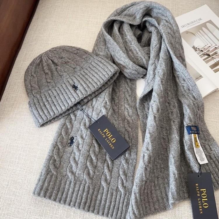 폴로 랄프로렌 꽈배기니트 머플러 & 비니 세트