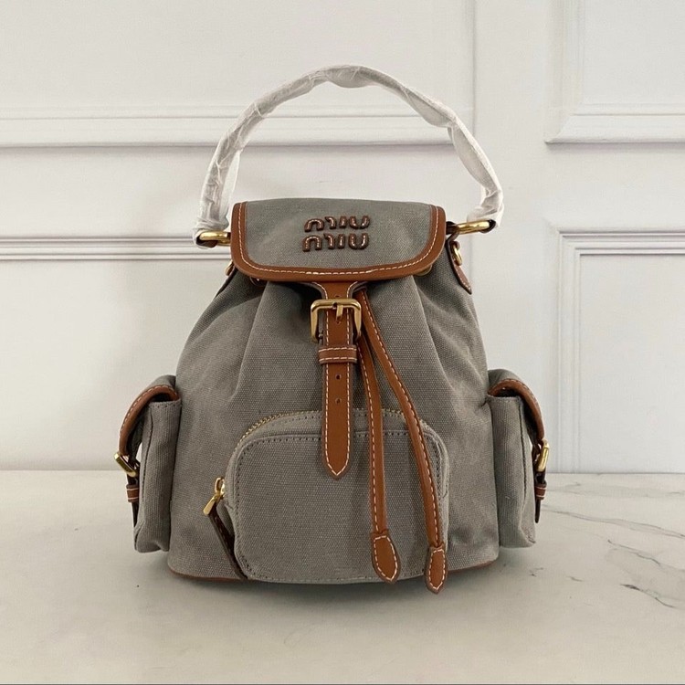 [단순반품ok] 미우미우 레더 트리밍 캔버스 백팩
