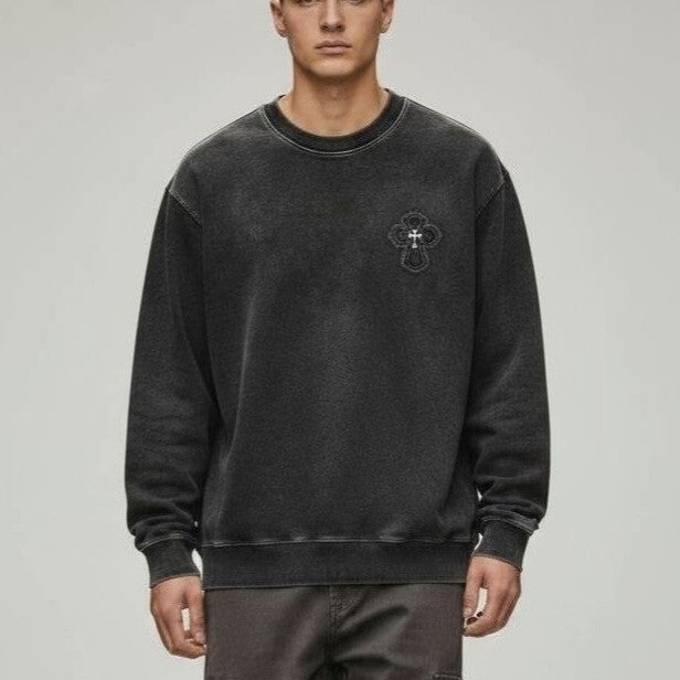 크롬하츠 십자가 엠보 말발굽패치 피그먼트 워싱 맨투맨