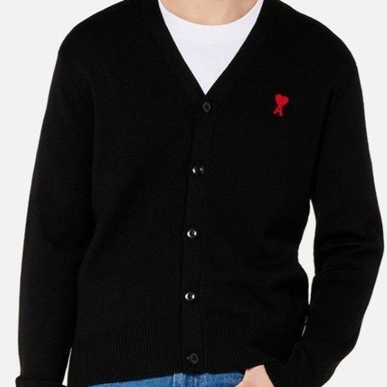 아미 스몰체인 레드하트 V넥 울가디건