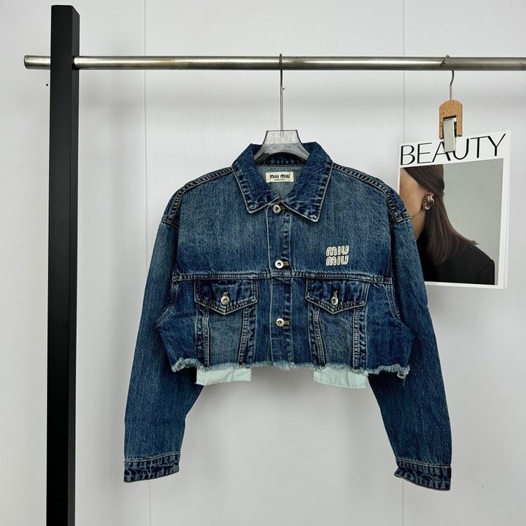 [단순반품ok] 미우미우 주얼리 로고 크롭 데님 자켓 청자켓 (세일)