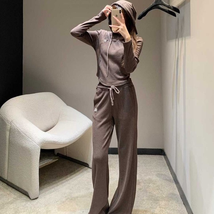 미우미우 여성용 자수로고 후드 트레이닝 셋트 2color