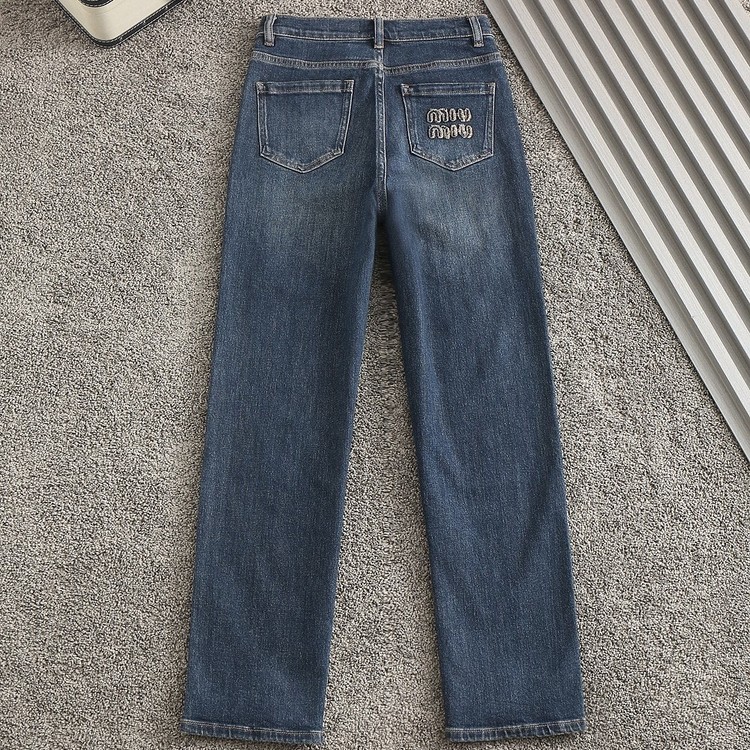 미우미우 자수패치로고 스판데님진