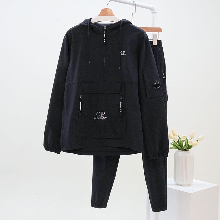 CP컴퍼니 남성 포켓 빅자수 로고 후드 아노락 & 포켓 조거 팬츠 셋 2color