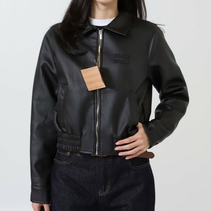 [단순반품ok] 미우미우 체스트 로고 램스킨 크롭 자켓