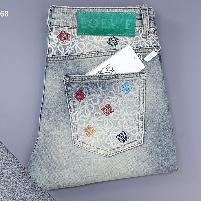 [단순반품ok] 로에베 아나그램 컬러 백포켓 워싱 데님 팬츠