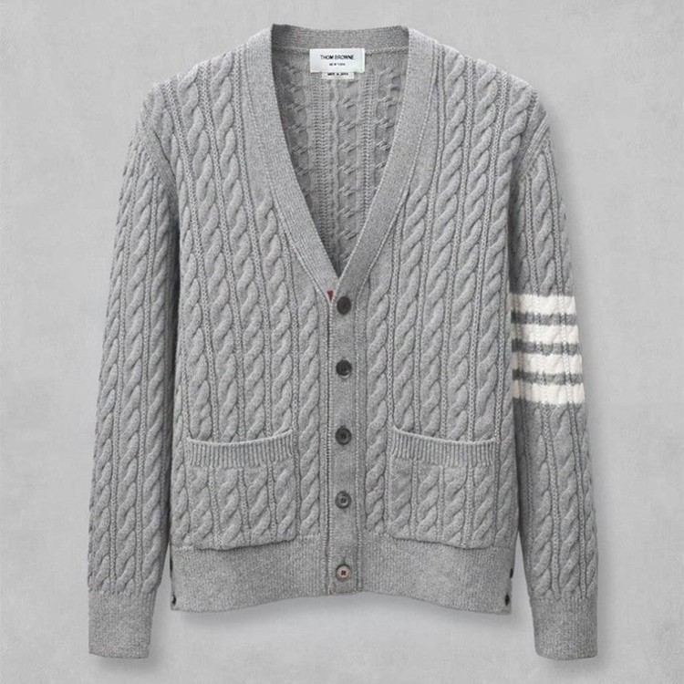 [단순반품ok] 톰브라운 코튼 사선 4-바 케이블 울 니트 브이넥 가디건
