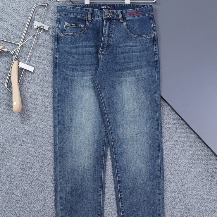 [단순반품ok] 프라다 밀라노 삼각로고 패치 워싱 데님 팬츠
