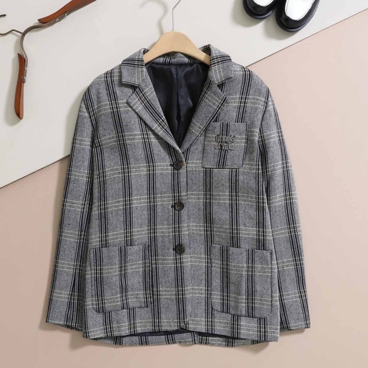[단순반품ok] 미우미우 싱글브레스트 체크 셰브론 재킷