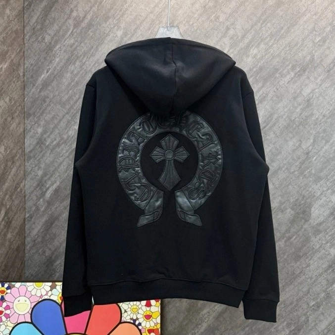 크롬하츠 홀스슈 레더 패치 집업 후드 자켓