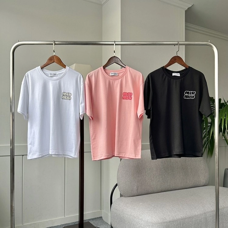 미우미우 뽀글이자수 티셔츠 3color